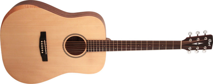 Cort acoustic guitar featuring arm bevel-cut on top of the body for comfortable posture and performance