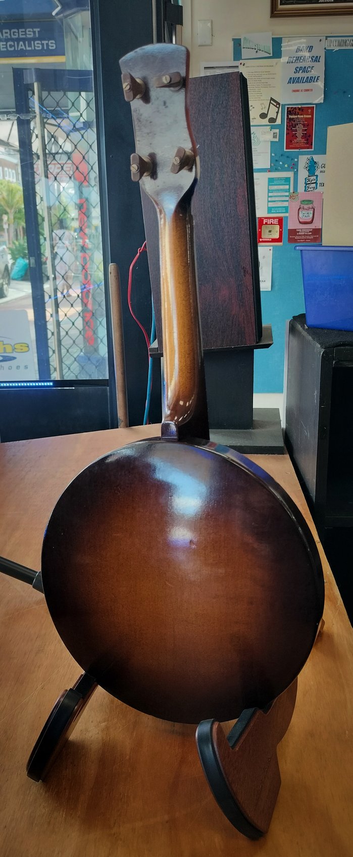 Brand: Melody-Uke 2nd hand and made in the uk this "Banjuke" has alot of character and alot of life left in her. case included.